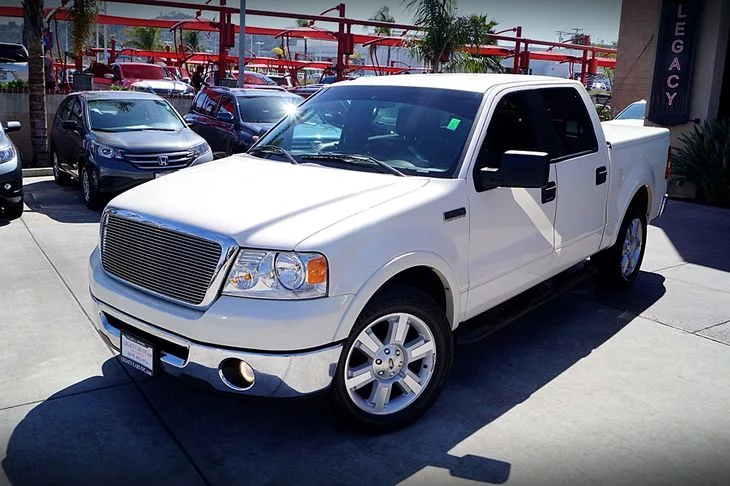 Our Clean Carfax 2008 Ford F-150 Lariat SuperCrew Cab shown in White is the next truck in your life. Or perhaps the first one, and what a great start in trucking! First off, this truck is powered by Ford's muscular 5.4L V8 which develops a stump-pulling 365lb-ft of torque. This 4x2 is ready to haul all your toys to the lake!