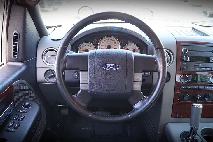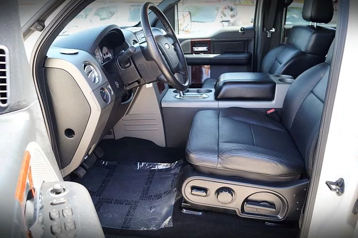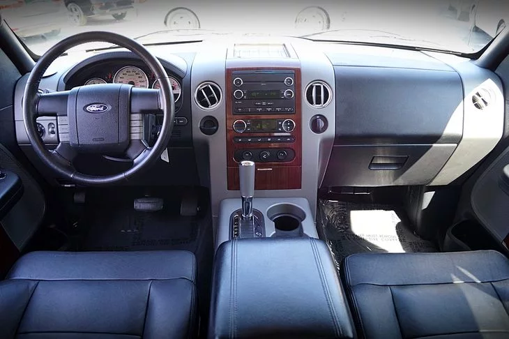 Our SuperCrew has four big doors and running boards for easing your family, friends or coworkers in and out. If you have cargo to bring in out of the weather, the rear seats fold for more space and there's a bedcover. There is a wealth of comfort in the car-like seats and power features but, let's not stop there! Features for this Lariat trim are plentiful and luxurious - leather upholstery, wood grain trim, full power accessories, multifunction leather steering wheel, and the list just keeps going.