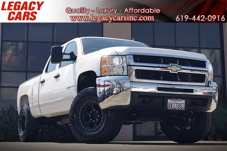 CLEAN CARFAX. DURAMAX 6.6L DIESEL WITH ALLISON TRANSMISSION. 4 INCH LIFT, CUSTOM WHEELS, NEW A/T TIRES, TOW PKG AND MORE. LOOKS AND DRIVES PERFECT. SERVICED AND NEEDS NOTHING. | Warranty | Custom Wheels | Bedliner | Our fantastic 2009 Chevrolet Silverado 2500HD LT Crew Cab 4x4 shown in Summit White is one terrific working machine! Under the hood is 6.6 Liter Duramax Turbo Diesel V8 powerhouse that generates 365hp while mated to a hard working 6 Speed Automatic transmission. With overdrive and tow/haul mode, this mighty Four Wheel Drive can tackle any job with ease while allowing you a truck that can do dinner with the family.